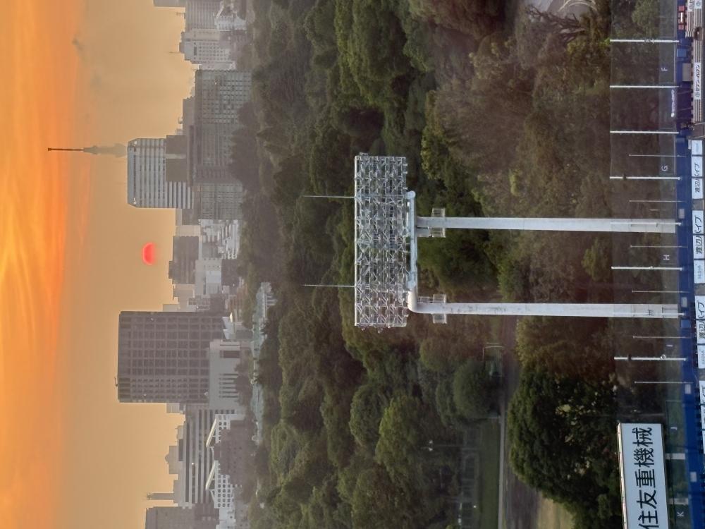 旅の疲れと共に熱戦を見た後、ホテルに行って窓の外を見てみると野球場が。その奥には東京スカイツリーまで見えました。