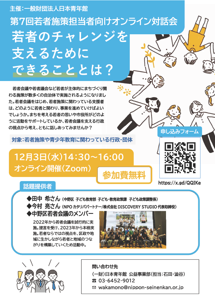 対 象:若者施策や青少年教育に関わっている行政・団体の方
