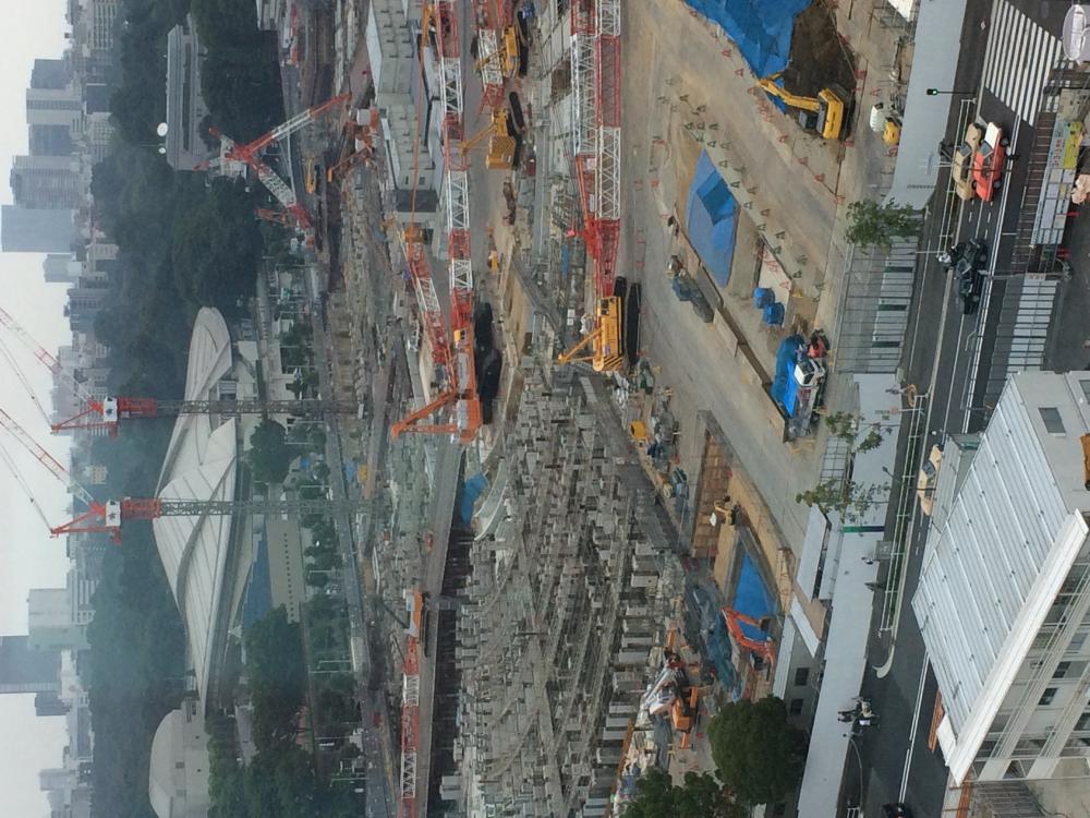 写真はその時宿泊した階の廊下から撮った建設中の国立競技場です。