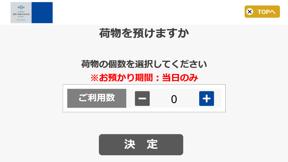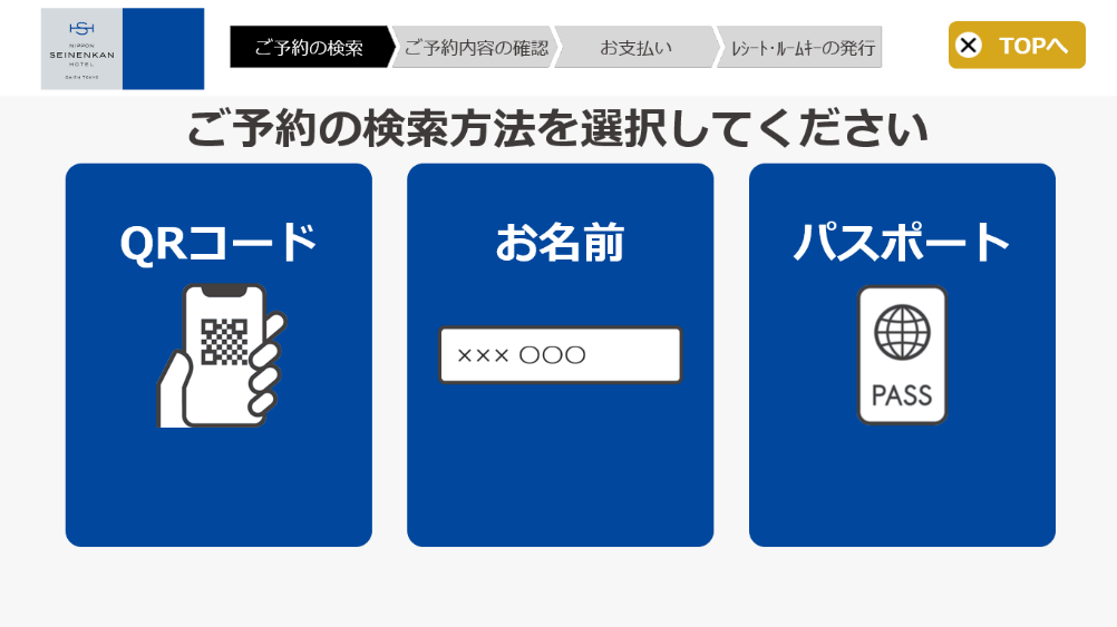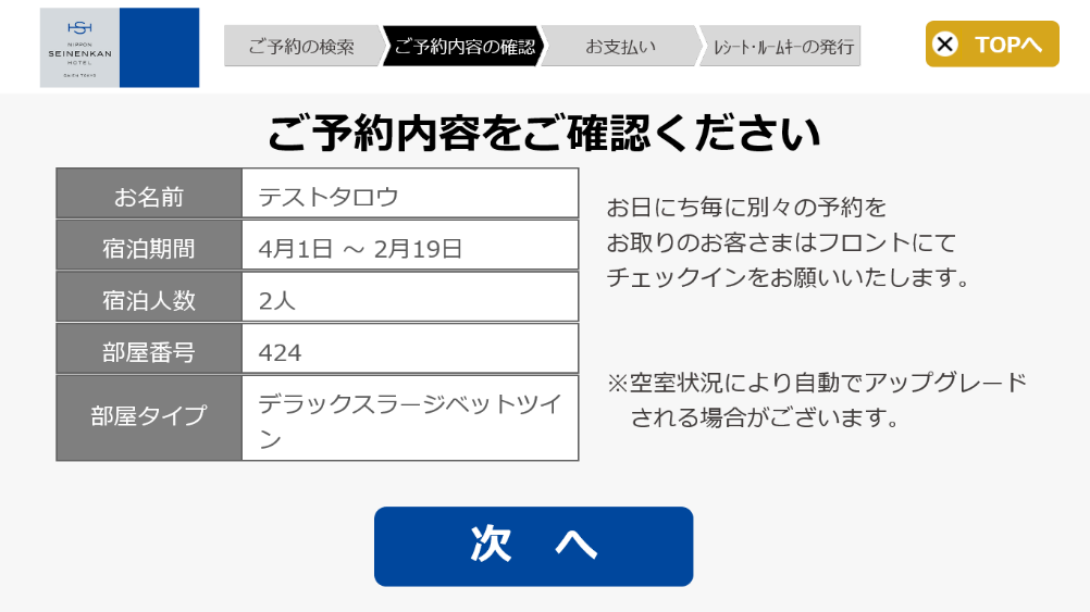 お日にち毎に別々の予約をお取りのお客さまはフロントにてチェックインをお願いいたします。