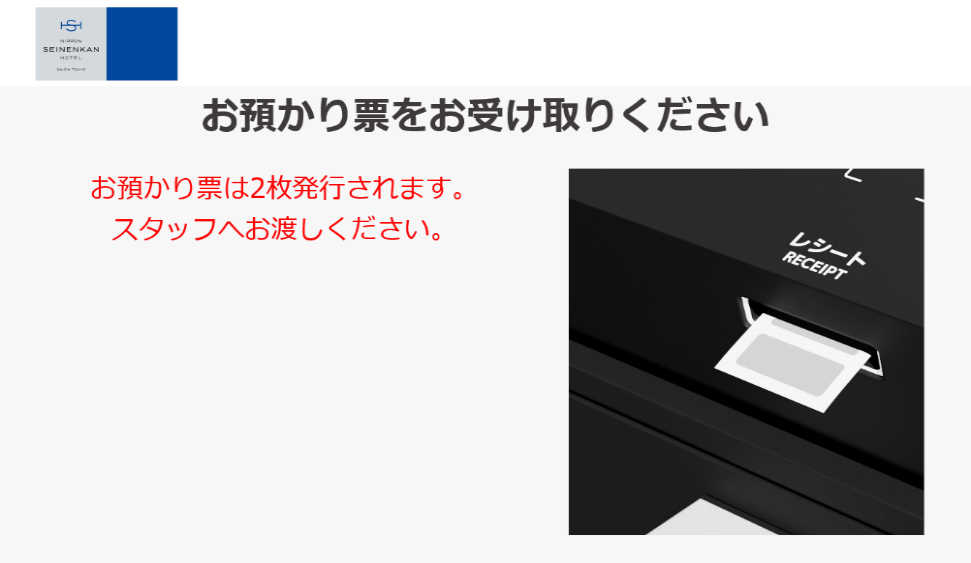 帰館の際は、自動チェックイン機でお預かり票のQRコードでチェックインが可能となります。