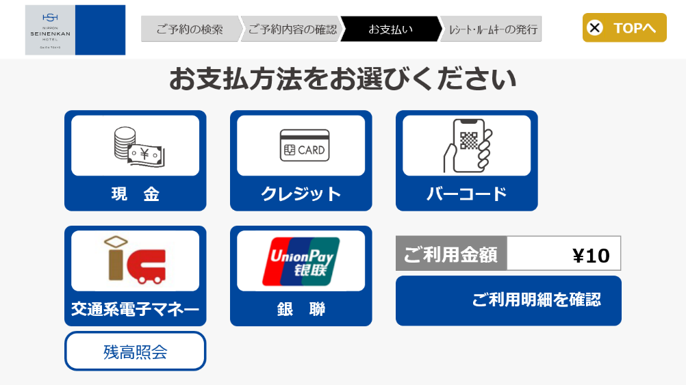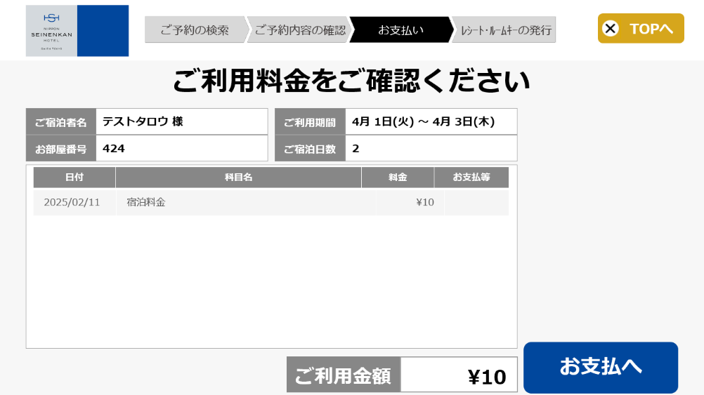 ※お部屋付等ご精算のあるお客様も、チェックアウト時清算可能です。