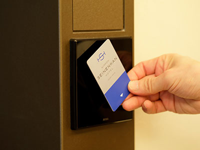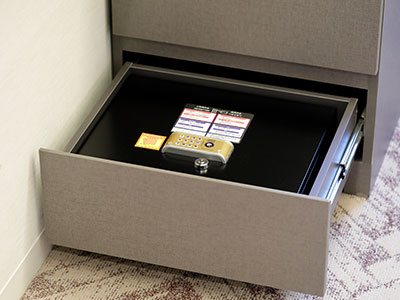 Only guests with key cards can use the elevator from the Front Desk floor to the guest rooms.