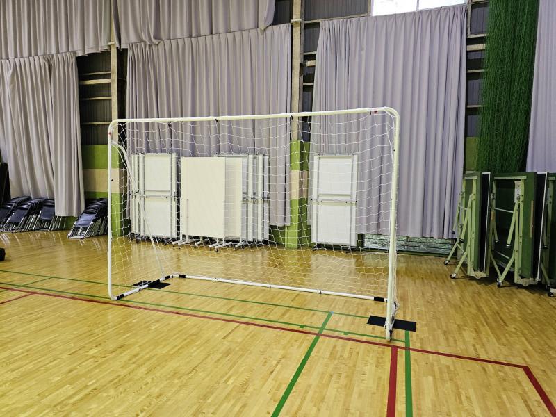 バスケットボールのゴールは230cm~305cmまで高さ可変、フットサルのゴールは3m×2mのサイズです。