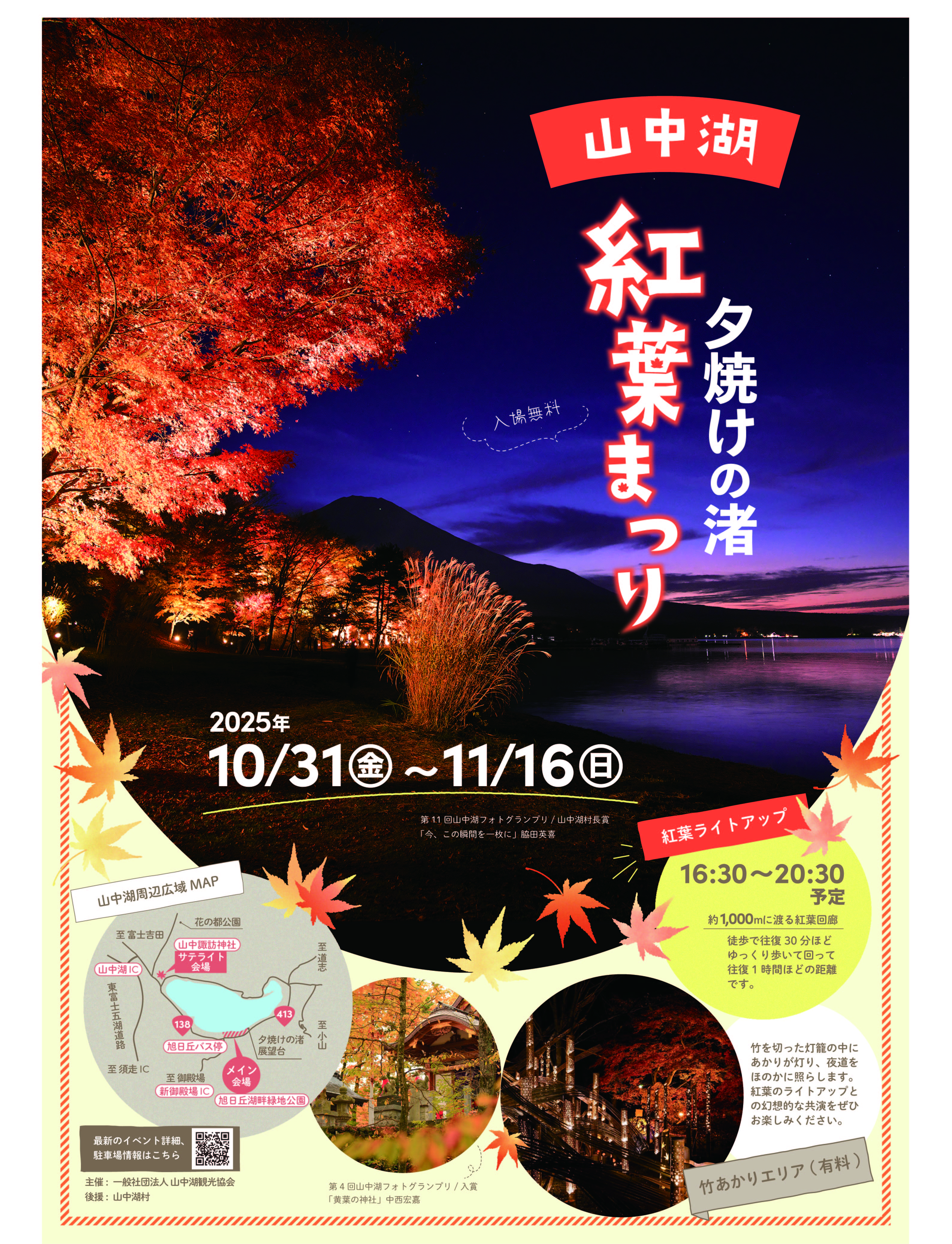 今年も「夕焼けの渚 紅葉まつり」が山中湖で開催されます。